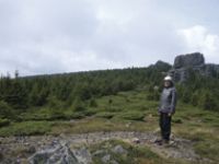 po hřebeni. Ve 12 hodin míjím dominantní skalisko. Obědvat chci na