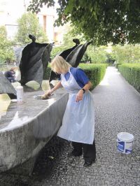 osvětlení a výklenků, zametáním pavučin, čištěním fontány a dalším