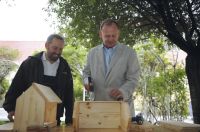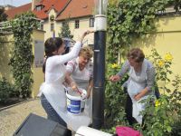prací na zvelebení Františkánské zahrady – natíráním laviček,