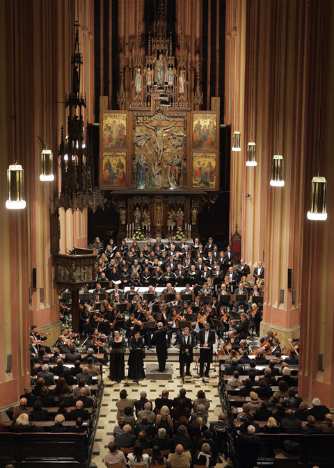 výkony umělců a těles na společném provedení velkých duchovních děl