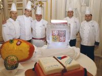 Účastníci recepce na Pražském hradě si 28. října 2014 za