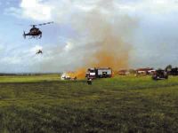 techniky z hořícího hangáru, předvedení vodního vznášedla, výcvik