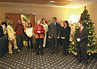 Praha-Ruzyně s přípitkem a pohoštěním se spolu s novináři zúčastnila