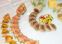 osmiporcové rautové mísy až po dorty, bonbóny a rautové dezerty. Pokrmy