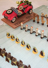 osmiporcové rautové mísy až po dorty, bonbóny a rautové dezerty. Pokrmy