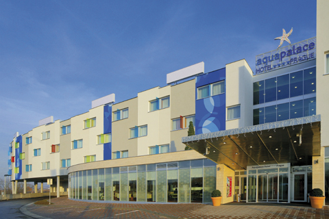 zákazníky a turisty. Aquapalace Hotel, položený výhodně u dálnice D1