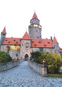 Trojice. Následoval hrad Bouzov s ukázkou historického šermu a rautem
