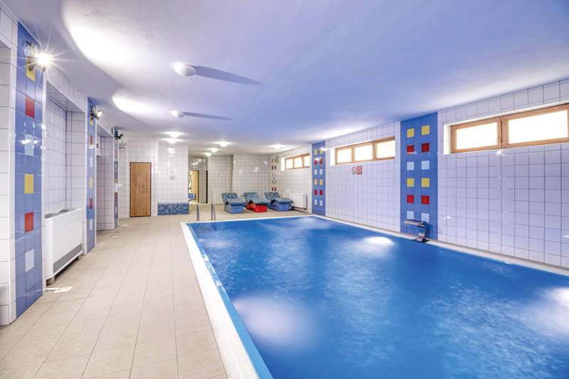 a bazénom, beach volejbalovým a tenisovým kurtom. Jej areál ponúka