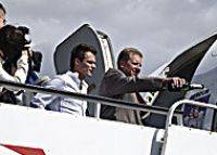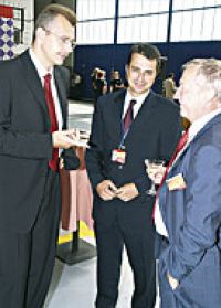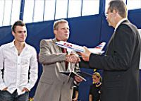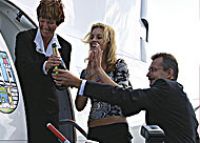 2003 Lucie Váchová a moderátor a zpěvák Leoš Mareš. Nová letadla ČSA