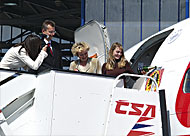 2003 Lucie Váchová a moderátor a zpěvák Leoš Mareš. Nová letadla ČSA