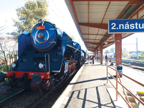 Smíchov vyjel zvláštní vlak tažený parní rychlíkovou lokomotivou.