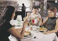 Kavárna (170 míst) slouží jako denní restaurace. Večer nabízí lákavý