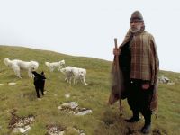směr Novaci. V jedné ze zatáček potkávám baču. Fotíme se. On nás svým