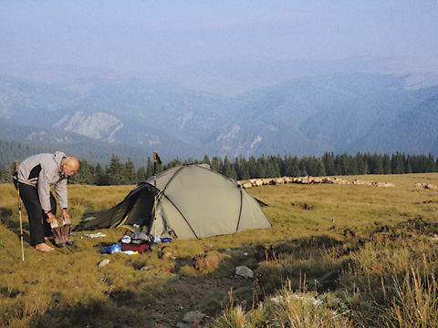 16.50 Jsem po večeři. Zatímco jsem jedl, prošlo stádo ovcí. Jejich bača
