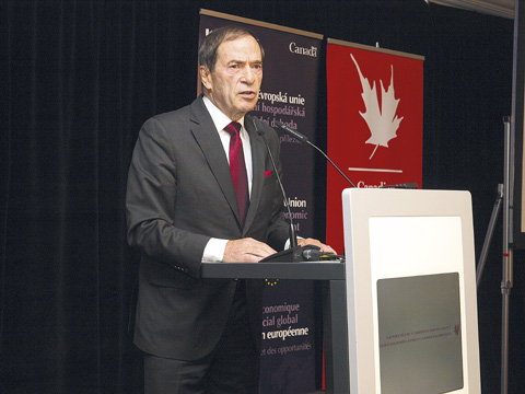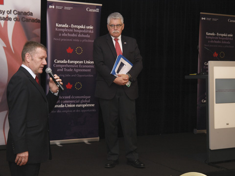 s kanadským velvyslancem při Evropské unii Davidem Plunkettem, který se na