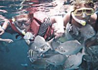 vykoupat se s nimi. Naši průvodci nás zavezli na jakýsi malý ostrůvek,