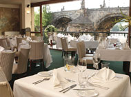 Karlův most. Kapacita restaurace je 194 míst u kulatých stolů,