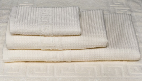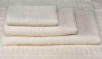 (plastický vzor s drobnými čtverečky), z druhé strany klasické froté.