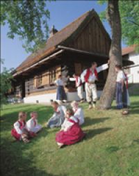 dřevěnka. Roubená chalupa se sedlovou, došky krytou střechou byla postavena