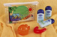 odličovací tampony, sprchovací čepice, hřebeny, koupelnové pantofle,