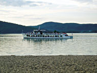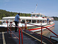 loď Hynek připluje k hlavnímu hotelovému molu, odkud hosté absolvují
