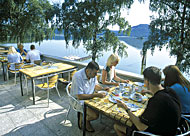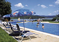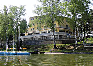 fitness i půjčovna horských kol a samozřejmě i terasa nad jezerem, kde