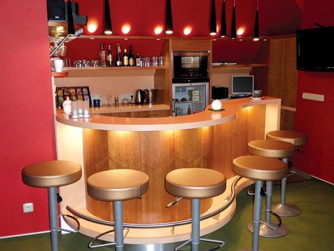 Máme tady slušně zásobený bar, v případě potřeby se studenou kuchyní