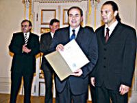 Národní ceny ČR za jakost, které mu předali ministr průmyslu a obchodu