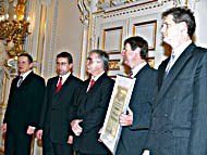 převzala z rukou předsedy vlády Jiřího Paroubka, ministra průmyslu a