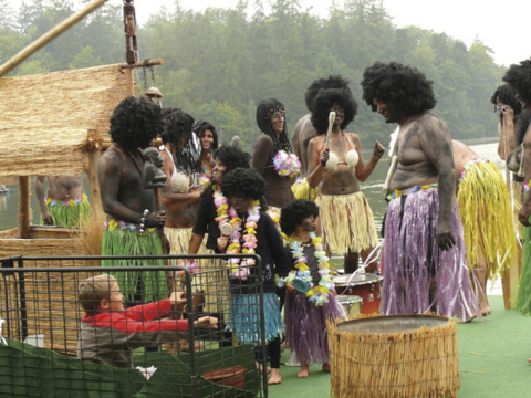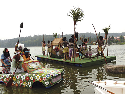Soutěž v přeplavání rybníka na čemkoliv. První cena? Obrovská kupa