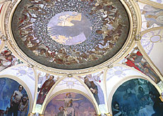 Muchovi a jeho vztahu k Obecnímu domu, o výzdobě Primátorského sálu.