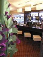 Zvláštností lobby baru jsou plněné bagety, drobné sendviče a zákusky.