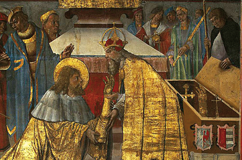 z pozdější kroniky tzv. Dalimila, kdy král uvolňuje svůj trůn svatému