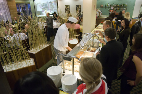 se lidé cpali obloženými chlebíčky, ruskými vejci, vrhali na guláš,