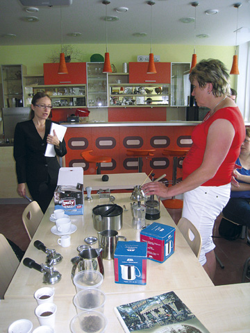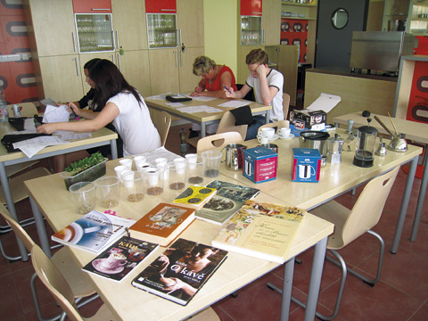 příslušenství. V druhé části zkoušky frekventanti připravovali kávu a