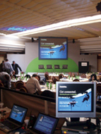 projekční plátno obrázky z akcí nebo přenos, např. z průběhu operace,
