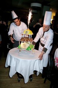 následné rozdávání narozeninového dortu primátorem Petrem Kulhánkem a