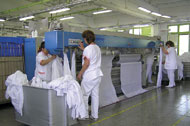 svozu použitého prádla přes praní, žehlení, přepravu, skladování až