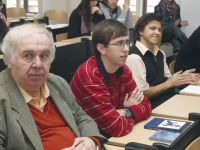 Libor Rouček a Miloslav Ransdorf, který tam studentům mj. řekl: