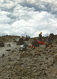 mockrát. Člověk stoupá k vrcholu Kilimandžára a lidé roztávají. Měl