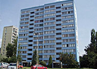 použit systém ETICS. Klasická „paneláková šeď“ tak díky barevnému