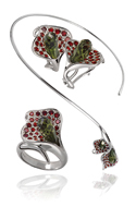 výstavách v Praze, Vídni, Barceloně, Londýně atd. Granátový šperk