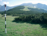 červený čtverec. Jdu po něm na široký travnatý hřbet, kterým