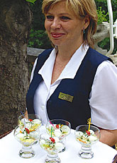 podávala křepelčí vejce a součástí jedlé dekorace byla i tři