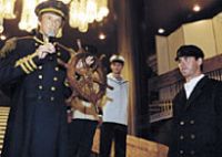MUDr. Pavla Béma v admirálské uniformě třímajícího kormidelní kolo,