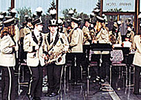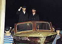 MUDr. Pavla Béma v admirálské uniformě třímajícího kormidelní kolo,