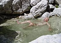 u bystřiny páchám hygienu. V Cave del Predil vyzvánějí poledne. Nad