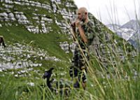 přelétá vrtulník. Rychle jsem sbalil a vypadl. Traverz na refugiu Brenner mi