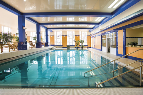 vyhřívanou halou. Nabízí fitness centrum, solárium a sály pro aerobic.