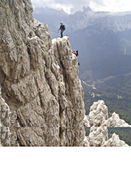 Budování zajištěných cest má v Alpách a především v Itálii a Rakousku více než stopadesátiletou historii. Letos koncem léta jsem s kamarády Rahanem a Bártem navštívil italské a jihotyrolské Dolomity, abych se seznámil i s touto infrastrukturou cestovního ruchu naší Evropské unie a trochu se „prošel“ po tamních zajištěných cestách a proběhl strmými suťovisky. Jaké to bylo, ilustrují obrázky.